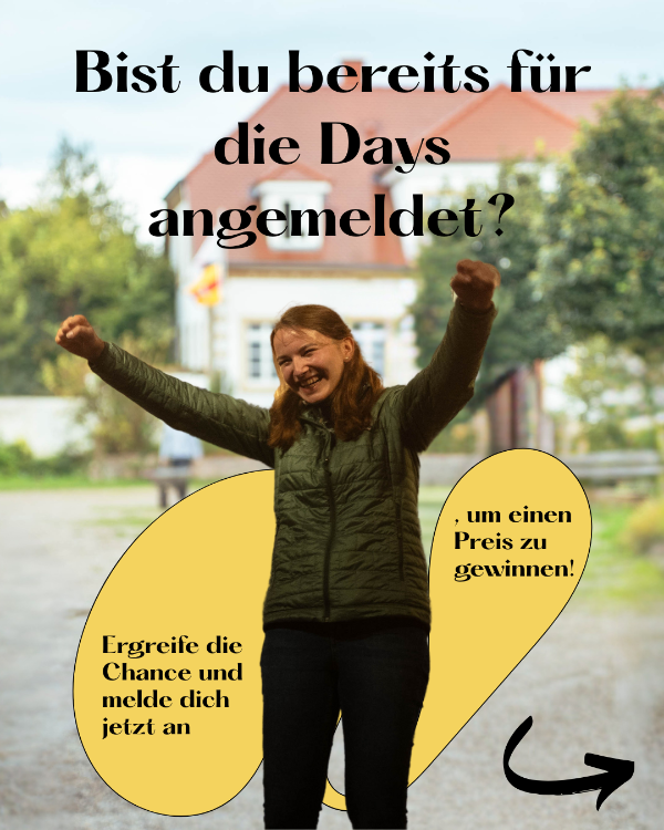 👉 kommentiere unter dem Gewinnspiel-Beitrag und tagge drei Freundinnen oder Freunde, die du gerne mit zu den DAYS nehmen würdest
