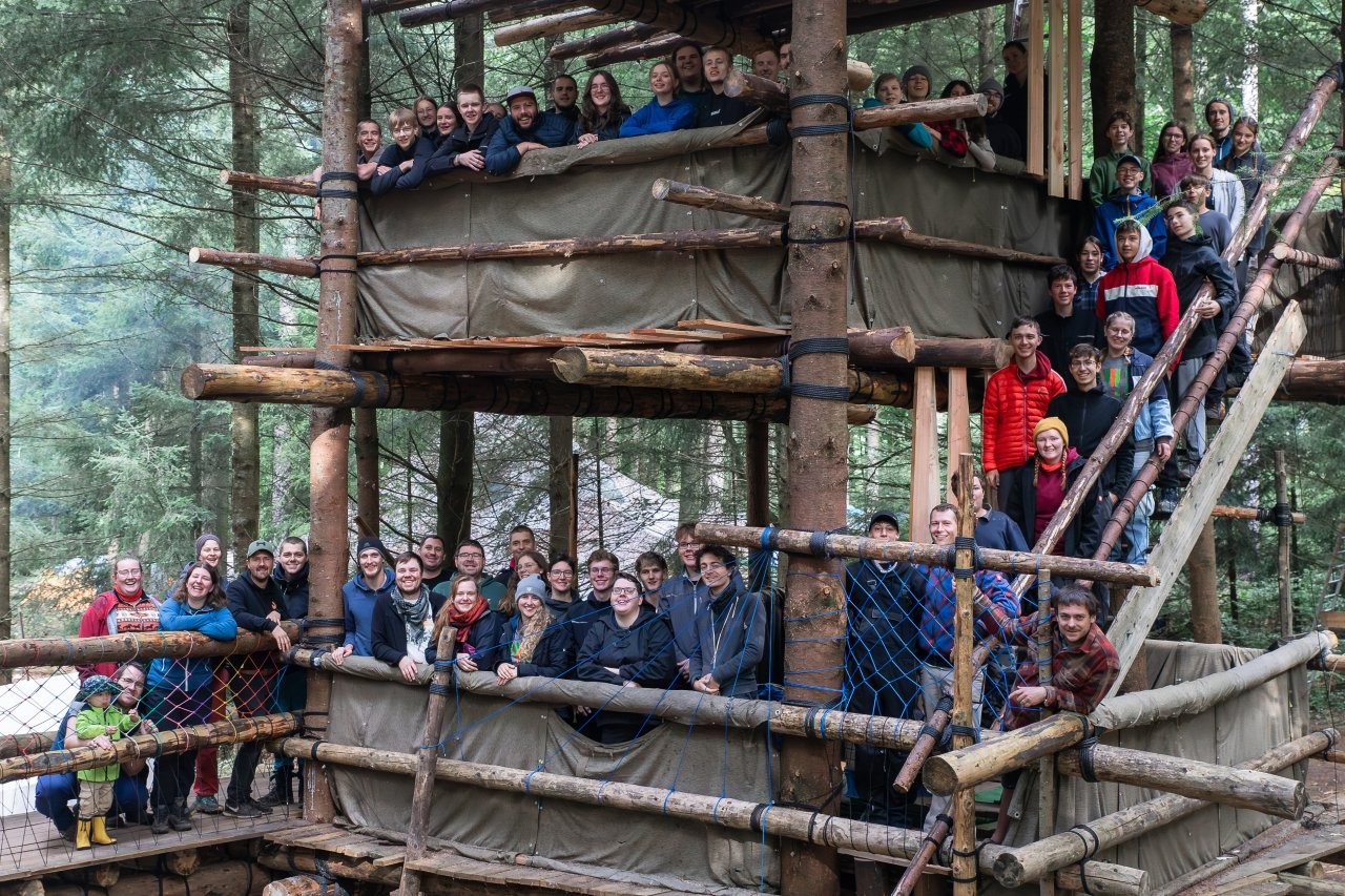 31 Teilnehmer und 30 Mitarbeiter haben gemeinschaftlich unser Baumhaus weitergebaut. Baumhausbauen ist ein Gemeinschaftsprojekt: Niemand kann allein schwere Stämme nach oben ziehen und entgegennehmen. Niemand kann allein einen Trägerbalken waagrecht einbinden. Und niemand kann allein innerhalb von sieben Bautagen fertig werden. Wir haben es als Team und als #BaumhauscampFamily geschafft – und wir sind mega stolz darauf. Diese Teamleistung verbindet und schafft eine Vertrauensbasis, die in so kurzer Zeit einzigartig ist. Jeder, der schon einmal beim Baumhauscamp dabei war, kann bestätigen, dass es ein besonderes Gottesgeschenk ist, wie gestärkt wir nach diesen zehn Tagen aus dem Wald gehen. Immer mit dabei ist Jesus.