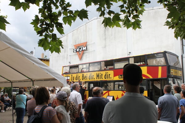 Die Ev. Jugend Karlsruhe-Land kommt mit dem Doppeldecker-Bus zu den Menschen. Ein Doppeldecker umgebaut zur mobilen Kirche, zum Begegnungsort, zum rollenden Cafe, Treffpunkt und Hoffnungsträger – ein Ort, der zukünftig im ganzen Kirchenbezirk wirken soll.